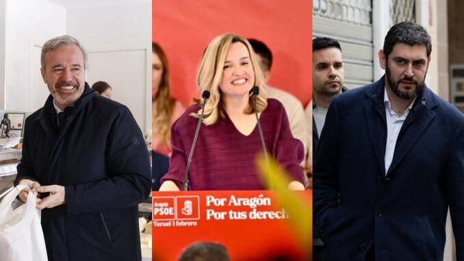 Jorge Azcón (PP), Pilar Alegría (PSOE) and Alejandro Nolasco (Vox) are the three main candidates for the leadership of the Aragon government. DR/X Photos