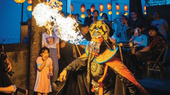 Unlike other forms of opera such as Peking Opera or Cantonese Opera, which emphasize singing and body movements, Sichuan Opera emphasizes exaggerated visual expression. The artists can change more than ten masks in just 20 seconds, vividly conveying the changes in the characters’ emotional states.