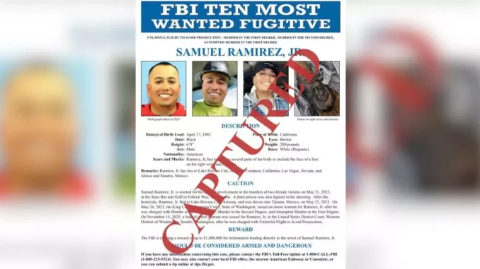 Samuel Ramírez Jr., 33, considered one of the 10 most wanted fugitives by the Federal Bureau of Investigation (FBI), was captured in Sinaloa, Mexico, after almost three years on the run.