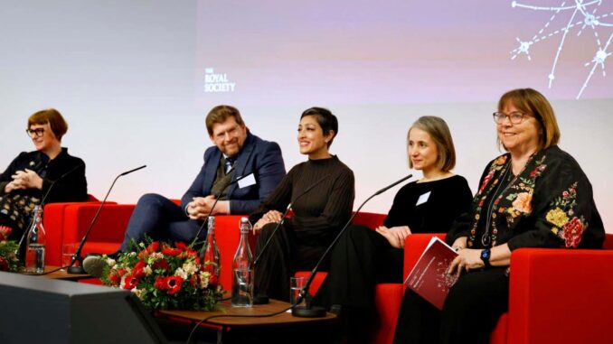 From left to right: Rachel Coldicutt, David Leslie, Rumman Chowdhury, Noura Al Moubayed and Wendy Hall