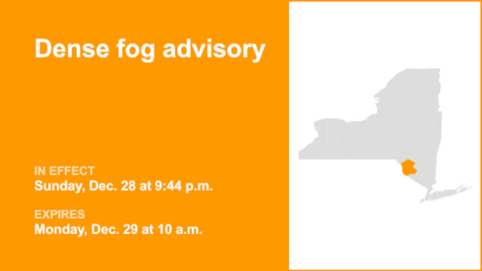 At 9:44 PM Sunday, the National Weather Service issued a Dense Fog Advisory in effect until 10:00 AM Monday for Sullivan County.