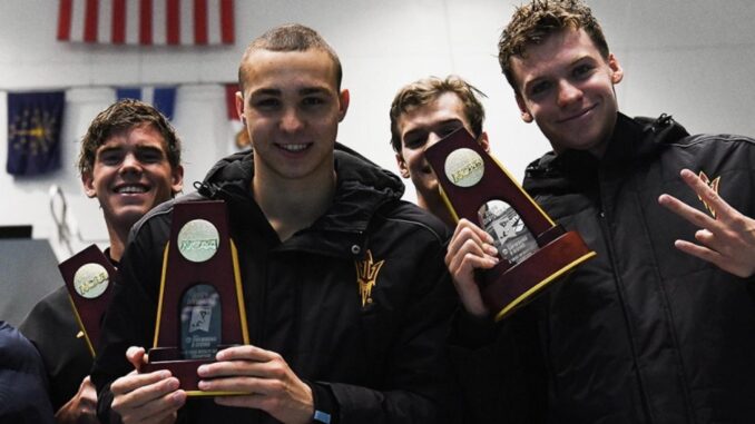 Arizona won the 2024 Division I men’s swimming and diving championship with 523.5 points, beating California, which finished with 444.5. It was the Sun Devils’ first title in program history.