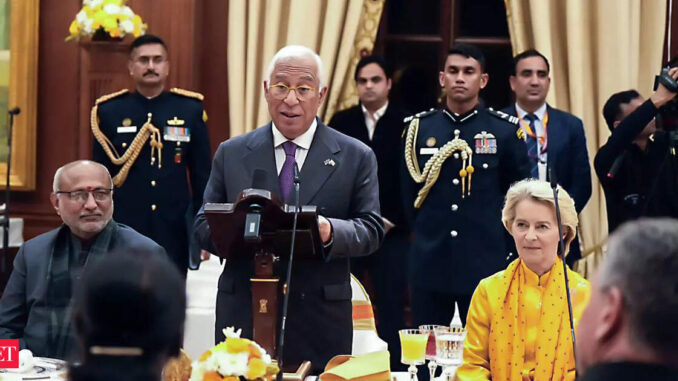 The statement highlights that in a context of global uncertainty and disruption, closer economic ties between India and the EU are more important than ever to drive growth, job creation, “green transformation, industrial development and more resilient, sustainable and trusted supply chains”.