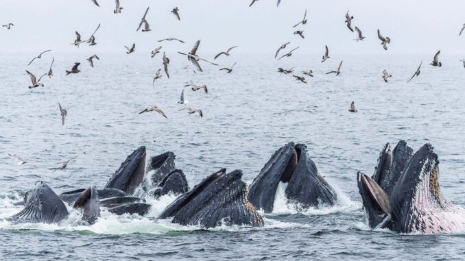 “What we’re seeing from the warm years forward is an increase in whales that were no longer participating in bubble net feeding in the area,” says O’Mahony.
