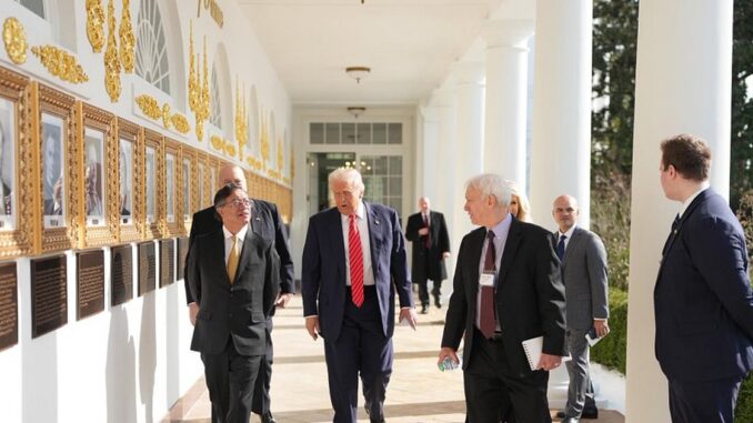 Petro and Trump (on the left) walked next to the portraits of North American presidents.PHOTO: X / PRESIDENCY OF COLOMBIA