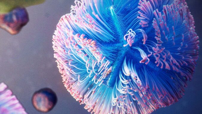 Illustration of mimivirus, a type of giant virus that infects amoebas