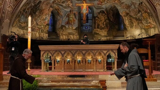 The remains were placed in the lower church of the Basilica of Saint Francis