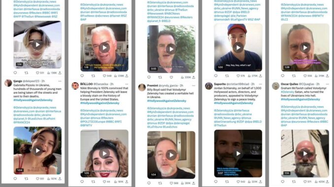 The latest “feat” seen on X and TikTok is a coordinated campaign that spreads manipulated videos of actors under the hashtag #HollywoodagainstZelensky to push pro-Kremlin narratives and weaken European support for Ukraine.