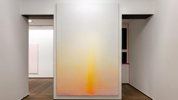As Vasili Kandinski said, “White is deep, absolute silence, full of possibilities” and these possibilities are explored by this artist. Paint air and light, physical realities in a colorless appearance, but containing the entire chromatic spectrum that our retinas are capable of distinguishing, which is what this painter of atmospheres and reflections does when he composes fluorescent, medium-sized sparkles between Rothko’s color blocks and the cloudy atmospheres of William Turner’s sea storms.