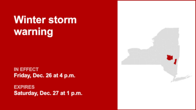 At 12:58 a.m. Friday, the National Weather Service issued a winter storm warning in effect from 4:00 p.m. until 1:00 p.m. Saturday for West Albany and West Columbia, as well as Schoharie County.