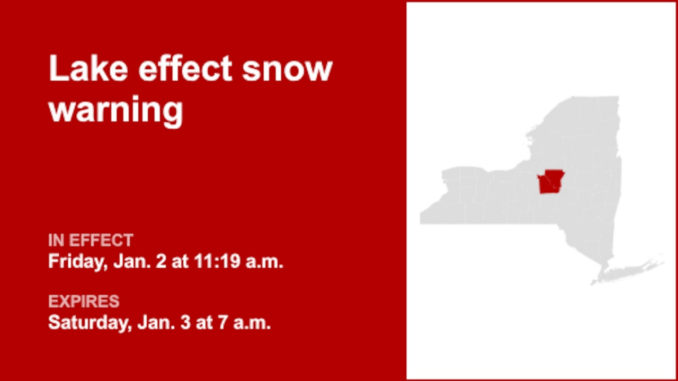 At 11:19 a.m. Friday, the National Weather Service issued a snow warning in effect until 7 a.m. Saturday for Madison and Oneida counties.