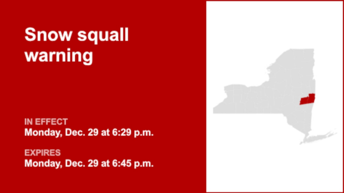 “At 6:29 p.m., a dangerous snowstorm developed over Rensselaer, moving east at 15 mph,” the weather service said. “Travel will become difficult and potentially dangerous within minutes.”