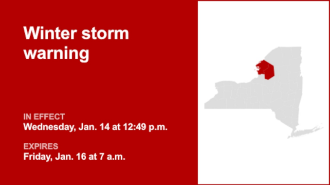 The National Weather Service issued a winter storm warning at 12:49 p.m. Wednesday in effect until 7 a.m. Friday for Jefferson and Lewis counties.