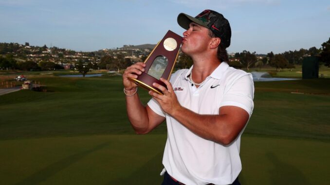 CARLSBAD, CALIFORNIA – Ole Miss junior Michael La Sasso won the 2025 NCAA Division I Men’s Golf Championship by two strokes at the Omni La Costa Resort & Spa North Course (75,272 yards), becoming just the second player in school history to win an individual NCAA title.
